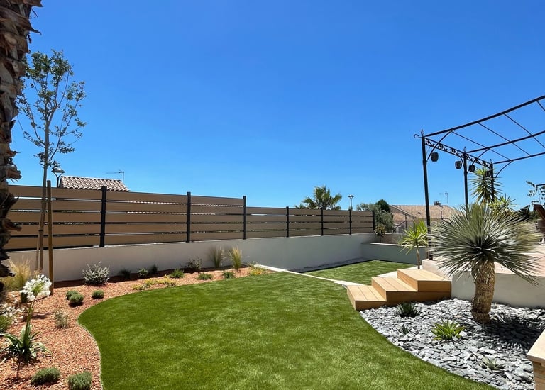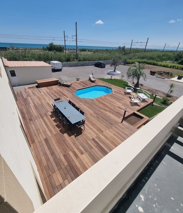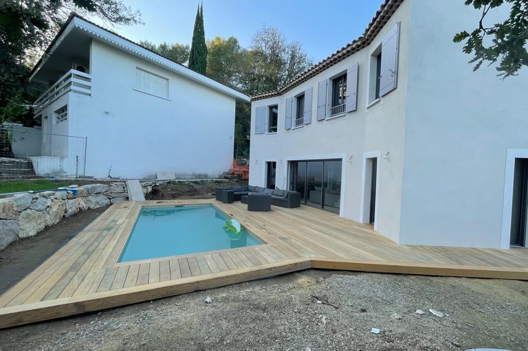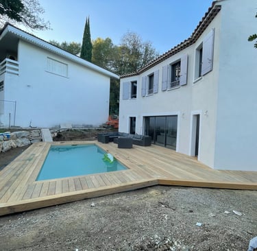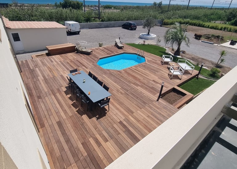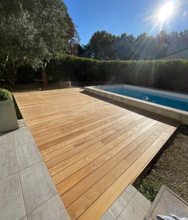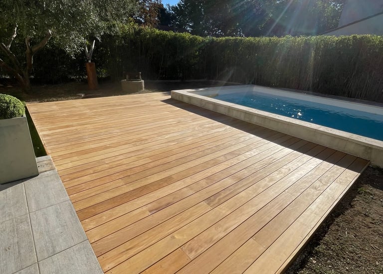 Découvrez nos projets de terrasse bois et aménagement paysager.